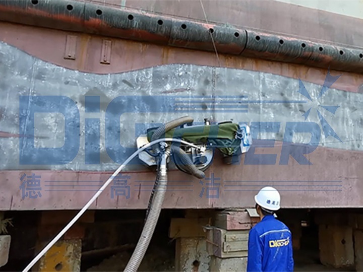 再看現(xiàn)在的修船基地,沒有高大的腳手架、沒有到處飛濺的漆渣、沒有四流的污水,沒有繁多的工人,船舶除漆除銹卻能高效快速的完成。原來是船塢請(qǐng)來的“王牌嘉賓”,改變了船舶除漆除銹的工況,提高了效率。