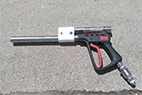 空化射流清洗槍配備不同的主機設備,具有不用的清洗效率。工作壓力根據需要可在0-28 MPa之間調節(jié),有效靶距10 cm內。